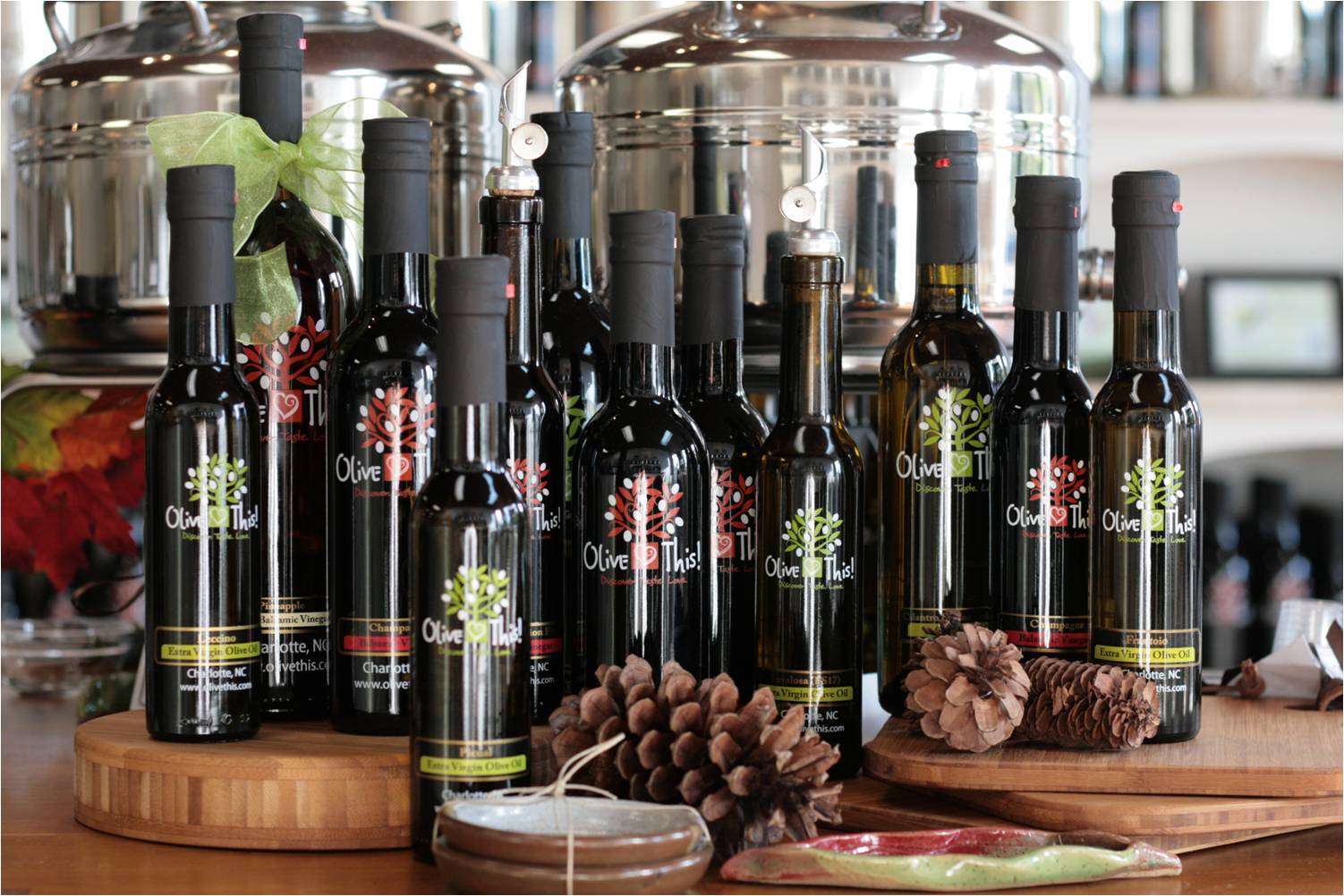 Sample more than 50 varieties of the finest, freshest imported extra virgin olive oils, all natural, aged balsamic vinegars and specialty oils. Our olives are grown and pressed by artisans and small farms throughout the world and are 100% extra virgin, unfiltered and settled. All of our oils and vinegars are imported to our stores in Asheville and Charlotte and bottled locally on site.