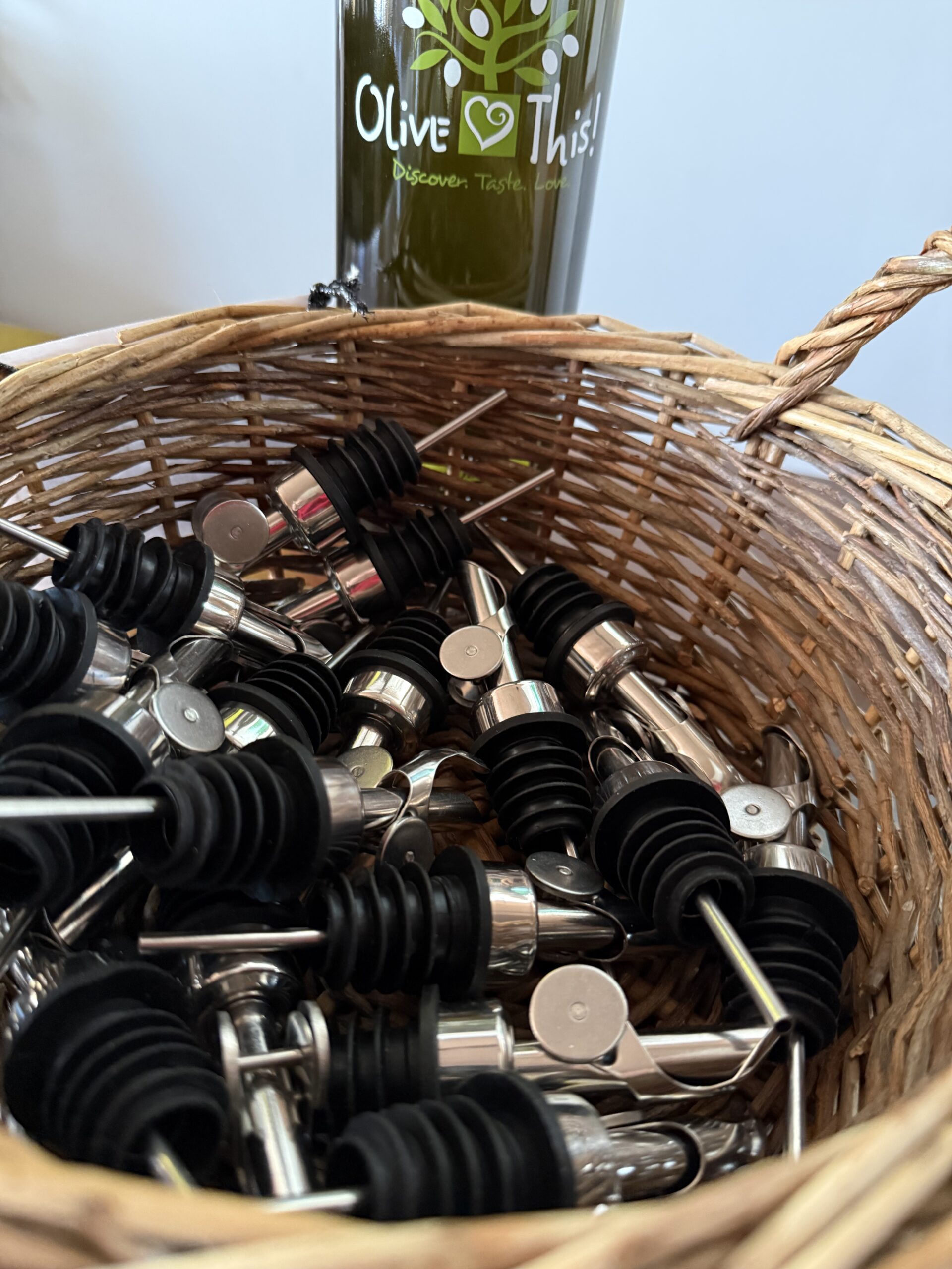 Control the flow of your oil or vinegar with this handy pour spout. A combination of steel and stainless steel along with a rubber base make an easy-to-use spout that fits on all of our 200ml, 375ml and 750ml bottles.