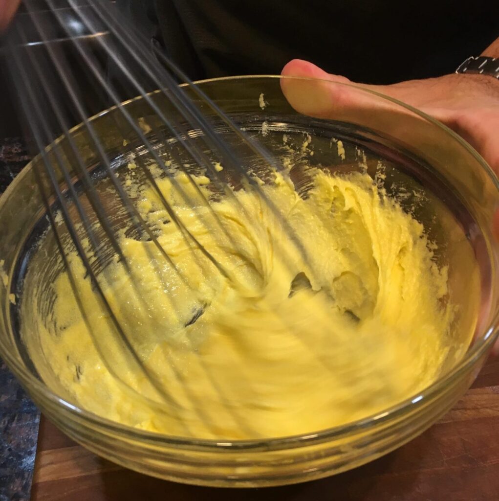 In saucepan over medium-high heat, warm the half-and-half and sea salt to before boiling. Meanwhile, beat the egg yolks with the sugar until it’s pale yellow and fluffy.