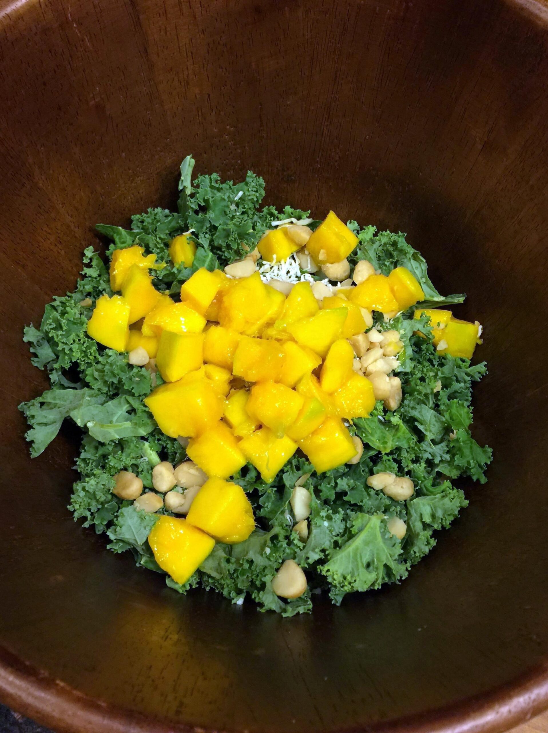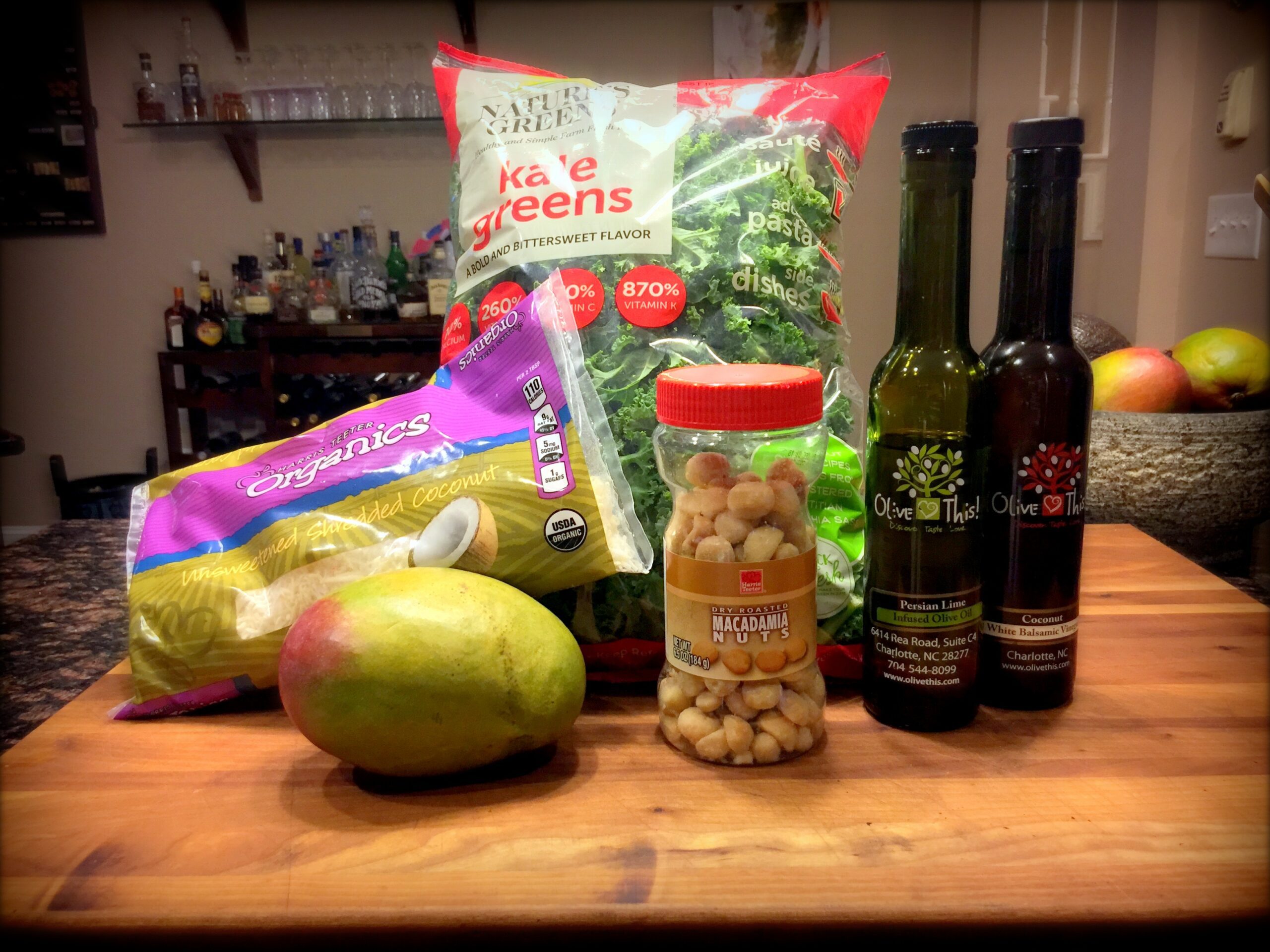 This delightful salad comes from Amy, our long-time team member at Olive This!. While on holiday she was served a version of this recipe and knew immediately that she could recreate it at home. We are certainly glad she did. The tropical sweet vinaigrette softens the sometimes bitter kale making for a refreshing and healthy salad.