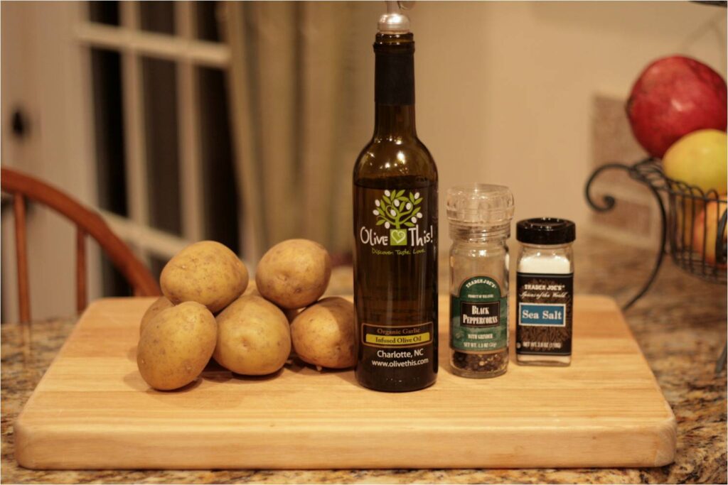 This is probably one of the easiest recipes we’ve posted yet. Just four ingredients (two of which are salt and pepper) and you don’t need a peeler or whisk, not even a knife to cut the potatoes. Simply boil, smash and bake. Plus, the one thing this dish has over any baked or mashed potato is the crunchy texture on the outside. Not only does it offer the combination of crispy edges and tender insides drizzled with the flavor of garlic olive oil, but there’s no need for butter at all. Healthy, easy and flavorful; what else works as a great side dish for a busy holiday meal?
