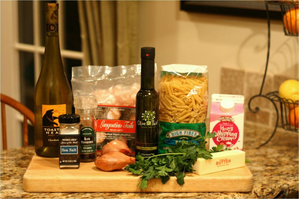 Truffle oil has that sense of something elegant and rich. Combine it with lobster and white wine cream sauce and you’ve got something special. Many of you commented on how much you enjoyed the Truffled Cauliflower Gratin dish we posted, so we decided to end the year with our White Truffle Oil. While this dish may not be overly friendly with the waistline or wallet, this dinner for two can be prepared in less than 20-25 minutes. Besides, resolutions for the New Year kick in next week, right?