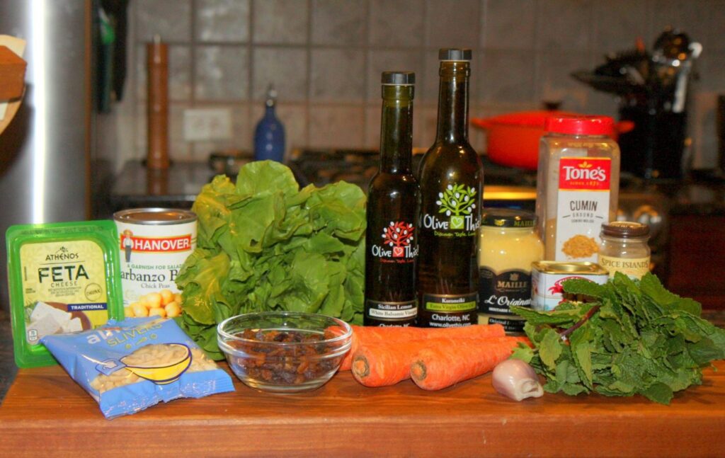 Here’s a wilted salad main dish to keep us healthy and warm during these cold months. The vinaigrette has typical Moroccan flavors of cumin, coriander, lemon and paprika. The cayenne pepper is just enough to add a lingering kick but please scale back if you do not enjoy it. Sicilian Lemon White Balsamic Vinegar really brightens up the vinaigrette and balances the bitter greens in the salad. While we used an ultra premium olive oil, another idea is to use Lemon Olive Oil or the Blood Orange Olive Oil to really enhance the citrus flavors. Both would be superb.